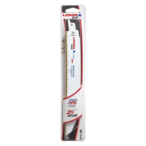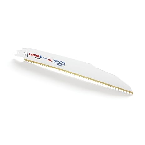 Lenox Power Arc Curved Demo Reciprocating Saw Blade has specially formulated titanium edge which improves the wear resistance of the teeth for faster cuts through the blade’s life. The bi-metal technology flexes resist breaking and also extends the life of the blade. The reinforced tooth design and titanium coating combine to create the longest lasting blade, ever. Power arc curved blade delivers up to 2x longer life vs. Traditional straight lenox recipe blades. Aggressive side blade optimizes the blade’s angle of attack for faster cutting in a variety of materials.