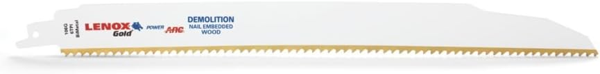 Lenox Power Arc Curved Demo Reciprocating Saw Blade has specially formulated titanium edge which improves the wear resistance of the teeth for faster cuts through the blade’s life. The bi-metal technology flexes resist breaking and also extends the life of the blade. The reinforced tooth design and titanium coating combine to create the longest lasting blade, ever. Power arc curved blade delivers up to 2x longer life vs. Traditional straight lenox recipe blades. Aggressive side blade optimizes the blade’s angle of attack for faster cutting in a variety of materials.