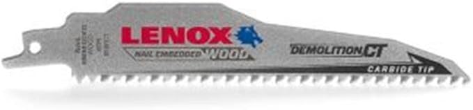 Lenox LEN1832162 Carbide Tooth Reciprocating Saw Blade this demolition reciprocating saw blade features high performance carbides which are welded with the latest technology to prevent tooth loss. Provide maximum durability in tough applications. Welded with the latest technology to increase durability and prevent tooth loss for longer blade life taller and thicker blade profile versus traditional blades, each tooth is precision ground on multiple surfaces to cut through nails with ease.