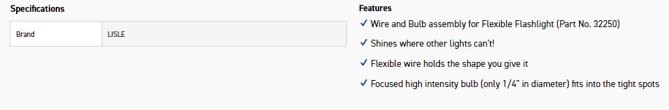 Home » Shop » HAND TOOLS » AUTOMOTIVE & VEHICLE SERVICE » LISLE 32310 WIRE AND BULB ASSEMBLY