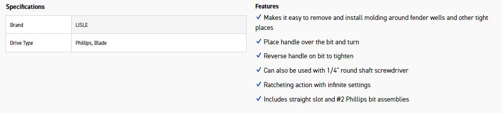 Makes it easy to remove and install molding around fender wells and other tight places