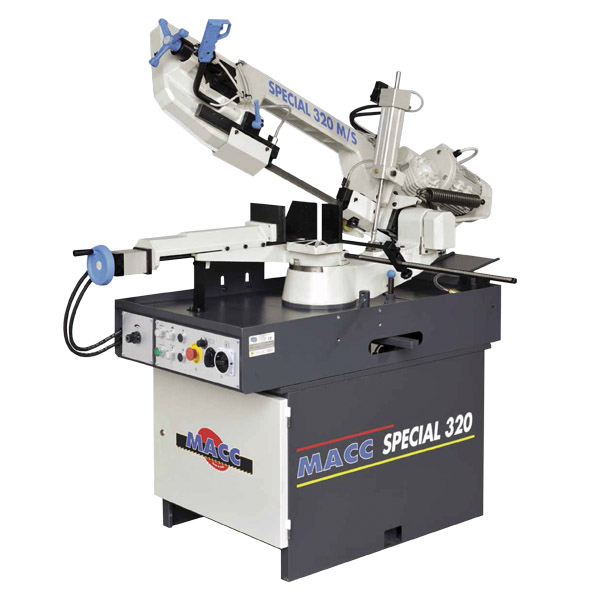 MACC BANDSAW, SEMI AUTO, 230MM CAP, SWIVEL HEAD, RH MITRE, 2 SPEED 415V 3PH