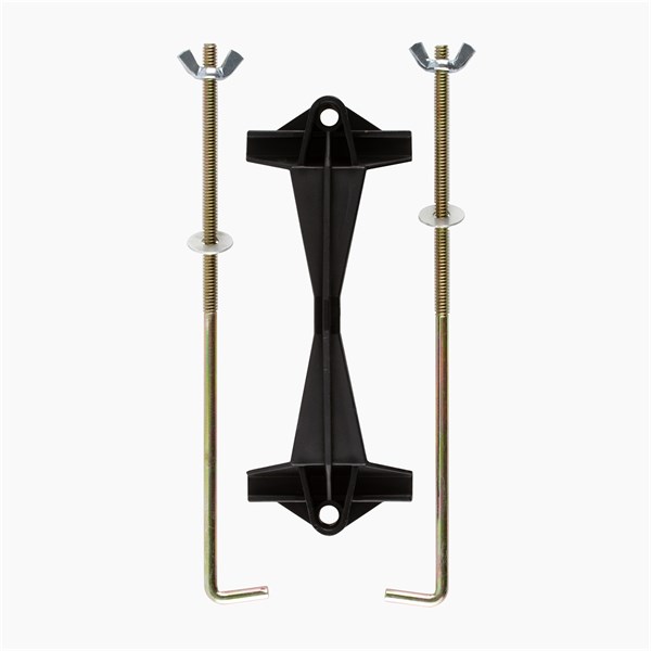 Plastic hold down clamp with metal bolts and brass wing nuts