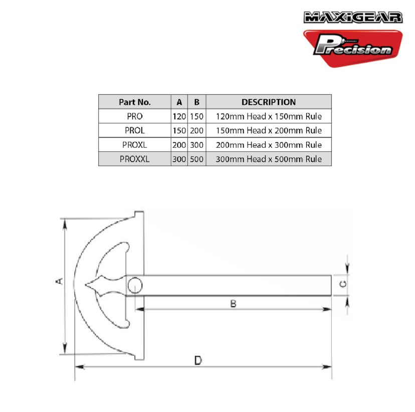 MAXIGEAR PROTRACTOR LOCKING OPEN HEAD 80mm HEAD x 120mm RULE