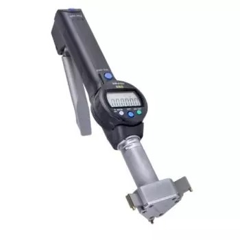 The Mitutoyo Borematic snap-on bore gage features an activation handle with a precision-balanced spring that smoothly retracts the anvils when pressed. Titanium Nitride (TiN) coated measuring contact points provide excellent durability and impact resistance which allows the instrument to measure to the bottom of a blind hole. With the ABSOLUTE encoder, once the origin point of the 568-371 is set with the ORIGIN button, the Borematic retains the setting for the entire battery life. Repeated origin setting (presetting) is no longer necessary. The Mitutoyo Borematic ABS Digimatic snap-open bore gage offers accurate bore measurements quicker and easier than ever before. Measurements are displayed on a large LCD readout that rotates 330° for easy reading in any instrument orientation.