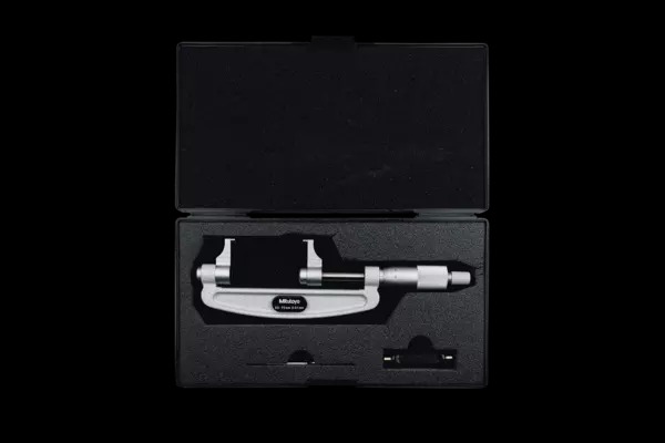 The Mitutoyo 143-103 mechanical caliper type micrometer delivers precise measurements on recessed features which regular micrometers are unable to achieve. The Mitutoyo caliper type micrometer features jaws constructed of hardened steel with carbide measuring surfaces and a hardened steel spindle to take precise measurements on recessed features. The micrometer’s ratchet stop mechanism provides a constant measuring force on the spindle to ensure accurate, repeatable measurements. The combination of the ratchet thimble and speeder enables a rapid spindle feed when measuring extensive dimensions for easy one-handed measurements.