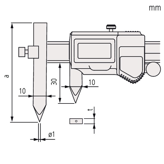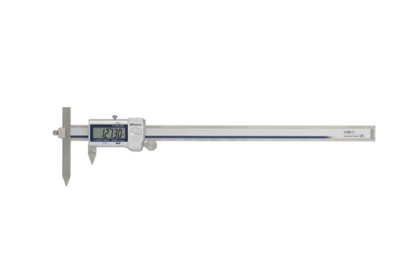The Mitutoyo ABSOLUTE Digimatic Offset Centerline caliper features main scale jaws that adjust up and down to measure unlevel (different planes) center-to-center distances. The offset centerline caliper takes highly accurate center-to-center measurements and hole diameters of 1.55mm to 10mm. The centerline caliper is constructed of hardened stainless steel and is IP67 rated for exceptional coolant-proof capabilities, making this caliper ideal on the shop floor.