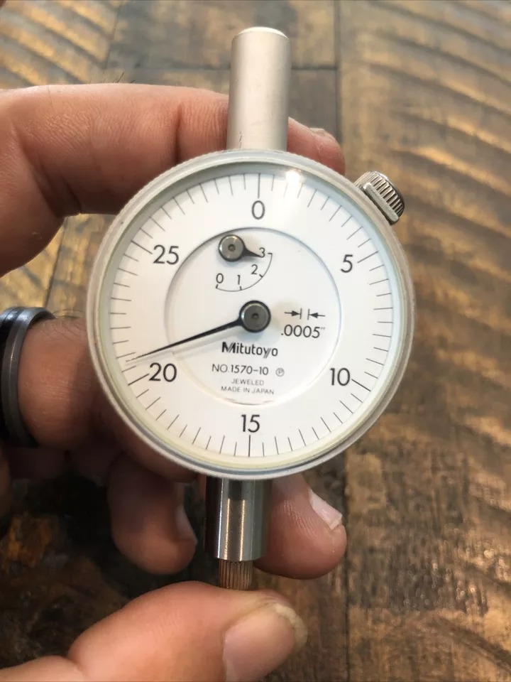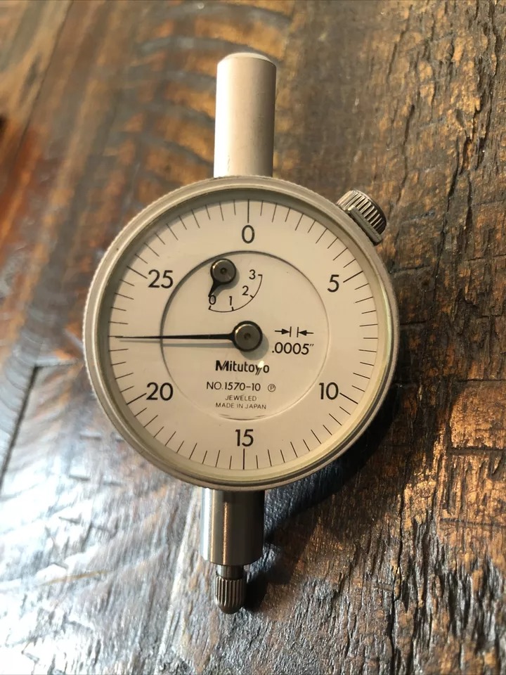Mitutoyo No. 1570-10 indicator .0005” x .075” travel. Item functions as it should! Smooth clean accurate repeats! Item does have etchings