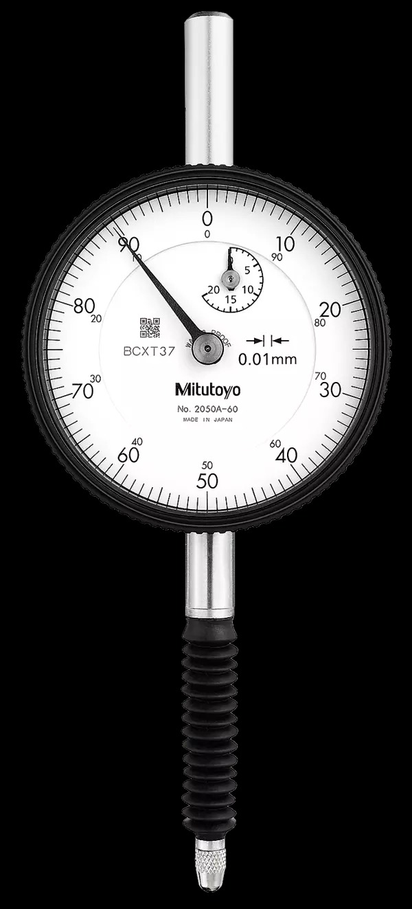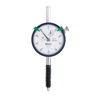 The Mitutoyo metric reading dial indicator performs with excellent accuracy and reliability, and it is available in several graduations and ranges for use in the widest range of applications. The 2050A-60 stem and spindle are constructed of hardened, high-strength steel, and the jeweled bearing provides wear resistance and low friction movements for smooth, precise operations. Secured adhesion between the frame and crystal, along with the use of an O-ring, protects the indicator against water and oil permeation via the front face. The crystal has a scratch and glare-resistant coating for clearer readings and better durability. The outer clamp and optional lifting lever can be attached to either side and can be easily installed or removed without the use of tools. The Mitutoyo Series 2 standard diameter dial indicator with inch reading offers simplicity, accuracy and durability for any application, making it our most popular indicator. This indicator conforms to ISO/JIS Standards.
