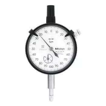 The Mitutoyo metric reading dial indicator performs with excellent accuracy and reliability, and it is available in several graduations and ranges for use in the widest range of applications. The 2119A-10 stem and spindle are constructed of hardened, high-strength steel, and the jeweled bearing provides wear resistance and low friction movements for smooth, precise operations. Secured adhesion between the frame and crystal, along with the use of an O-ring, protects the indicator against water and oil permeation via the front face. The crystal has a scratch and glare-resistant coating for clearer readings and better durability. The outer clamp and optional lifting lever can be attached to either side and can be easily installed or removed without the use of tools. The Mitutoyo Series 2 standard diameter dial indicator with inch reading offers simplicity, accuracy and durability for any application, making it our most popular indicator. This indicator conforms to ISO/JIS Standards.