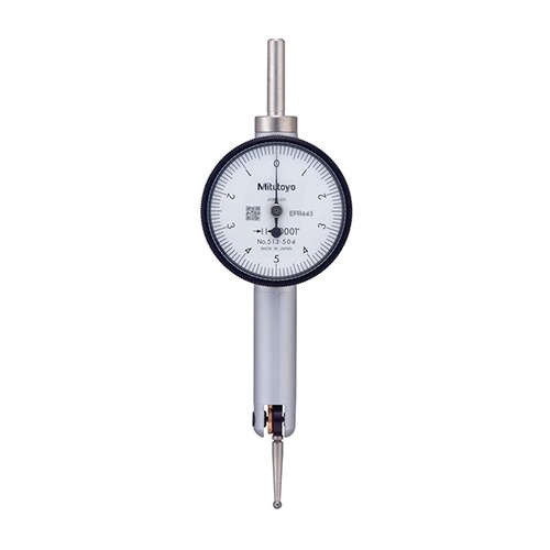 The 513-501E pocket-type Dial Test Indicator features a slim profile that allows precision measurements in small, narrow spaces. It has a horizontal face parallel to the axis, and three dovetail mounts allow for horizontal or vertical mounting from the front, top, or back of the indicator. The Indicator’s one-piece movement provides high-impact resistance and better durability, while jeweled bearings deliver high sensitivity and quick response.