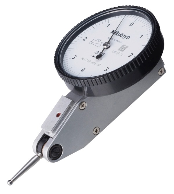 A Mitutoyo versatile anti-magnetic type lever indicator (or dial test indicator, DTI) suited to alignment operations on machine tools and similar applications. This indicator automatically adapts to the required measuring direction on contact, and the jewelled movement provides lowest friction and stiction for smooth and precise operation. Supplied with a basic set of mounting accessories.