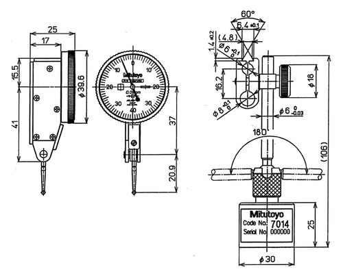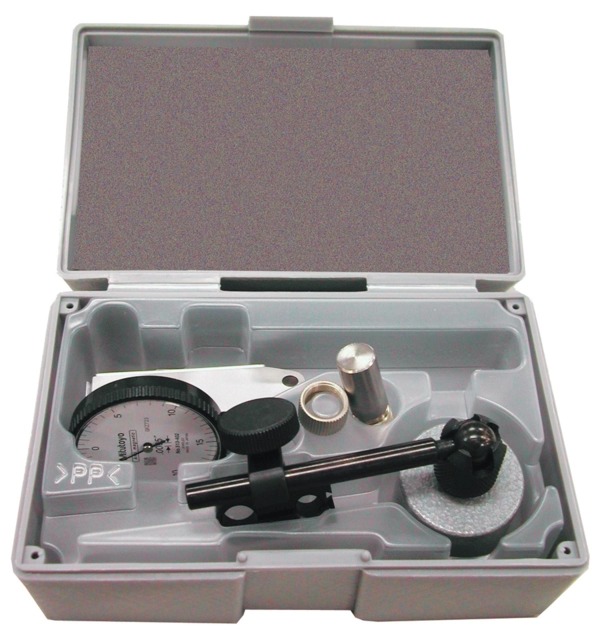 This horizontal dial test indicator features a magnetic stand, and a 0.03″ and 0.0005″ graduation.