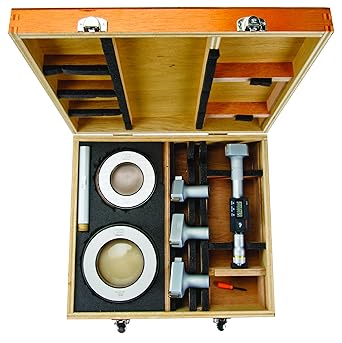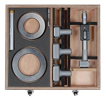 The Mitutoyo Digimatic Holtest internal micrometer utilizes three anvils and contact points for self-centering, precision measurements of the inside dimensions of bores. The 468-979 Mitutoyo Digimatic Holtest digital internal micrometer set features self-centering anvils evenly spaced at 120° with contact points coated in Titanium Nitride (TiN) to provide accurate, sensitive measurements that are highly durable. Precision-machined gears ensure reliable, repeatable measurements that are shown on a large, easy-to-read LCD display in an impact and water resistant housing. The holtest’s ratchet stop mechanism provides a constant measuring force on the hardened-steel spindle to ensure accurate, even measurements.