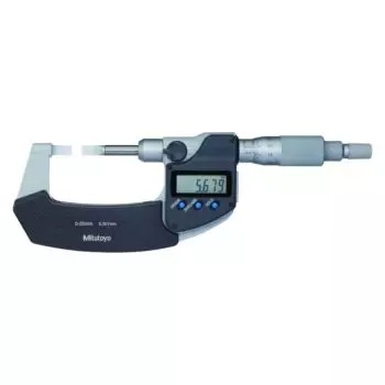 The Digimatic non-rotating spindle type blade micrometer quickly measures grooves, keyways and hard-to-reach areas with high accuracy. The Mitutoyo Digimatic blade micrometer utilizes a blade anvil and spindle for measuring difficult pieces such as groove diameters of shafts and keyways. The non-rotating spindle reduces torsion on softer parts being measured and prevents workpiece deformation and wear. A ratchet-stop mechanism provides uniform pressure on a workpiece for precise, repeatable measurements. Readings are displayed on an easy-to-read LCD readout.
