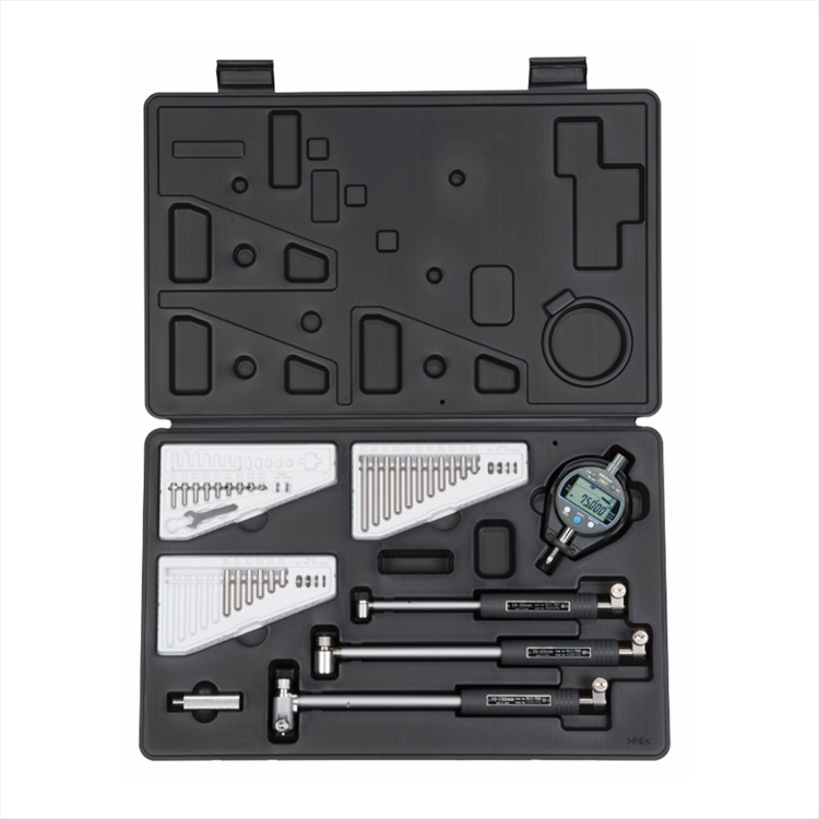 Delivered: In a box with bore gauge 511-701 / 511-702 / 511-703, digital indicator 543-310B-10, plastic cover for indicator 21DZA000, 26 anvils, 10 washers, 1 sub-anvil, spanner 102148