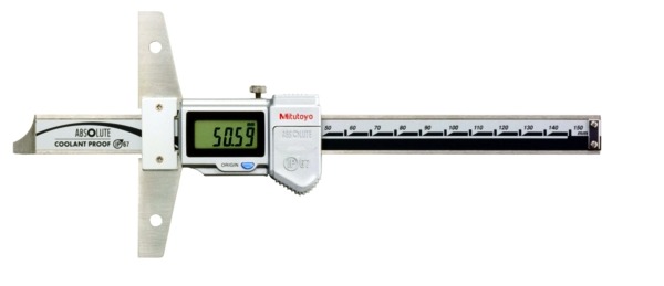 The Mitutoyo ABSOLUTE Digimatic depth gage provides highly accurate depth measurements for any shape that has a step, groove or slot. The Mitutoyo ABSOLUTE Digimatic depth gage features hardened, micro-lapped measuring faces and a base for improved accuracy and wear resistance. The Mitutoyo 571-251-20 digimatic depth gage is constructed of hardened stainless steel and is IP67 rated for exceptional coolant-proof capabilities, making it ideal for use on the shop floor. Measurements are displayed on a digital LCD readout with SPC output for easy, automatic recording.