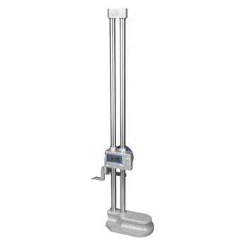 The Mitutoyo 192-672-10 Digimatic Multi-Function Height Gage offers the use of an optional signal probe to achieve highly accurate height and external dimensions with improved ease of operation and enhanced functionality. The highly versatile Mitutoyo multi-function digital height gage provides precise height measurements combined with an optional bi-direction touch probe signal to measure step, inside width and outside width. The included carbide-tipped long scriber is extremely durable and provides highly accurate marks on your workpiece. Measurements are shown on an easy-to-read LCD display.