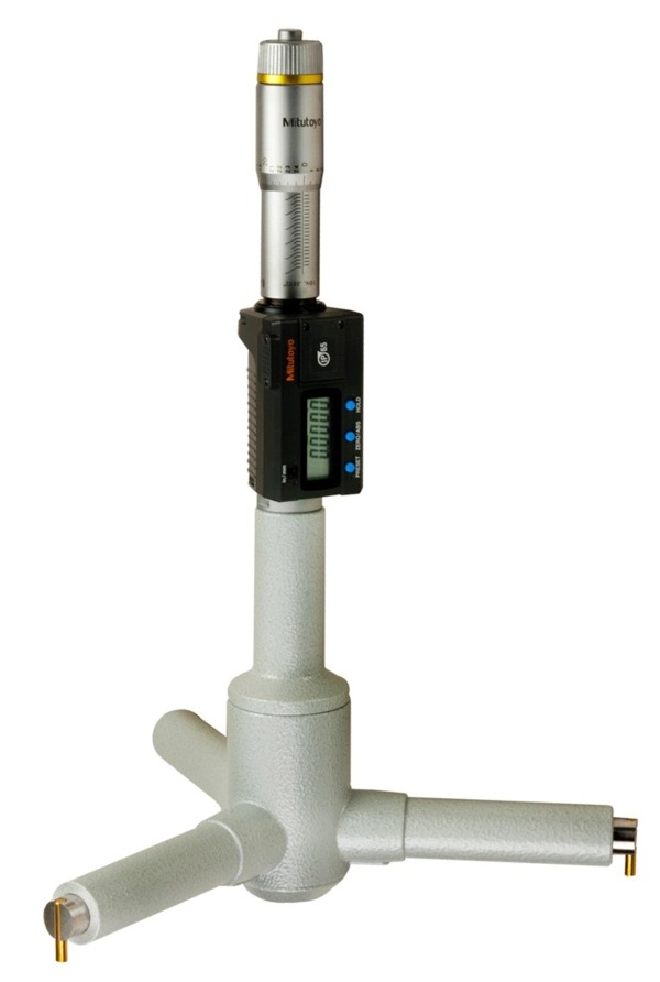 The Mitutoyo Digimatic Holtest internal micrometer utilizes three anvils and contact points for self-centering, precision measurements of the inside dimensions of bores. The 468-280 Mitutoyo Digimatic Holtest digital internal micrometer features self-centering anvils evenly spaced at 120° with contact points coated in Titanium Nitride (TiN) to provide accurate, sensitive measurements that are highly durable. Precision-machined gears ensure reliable, repeatable measurements that are shown on a large, easy-to-read LCD display in an impact and water resistant housing. The holtest’s ratchet stop mechanism provides a constant measuring force on the hardened-steel spindle to ensure accurate, even measurements.