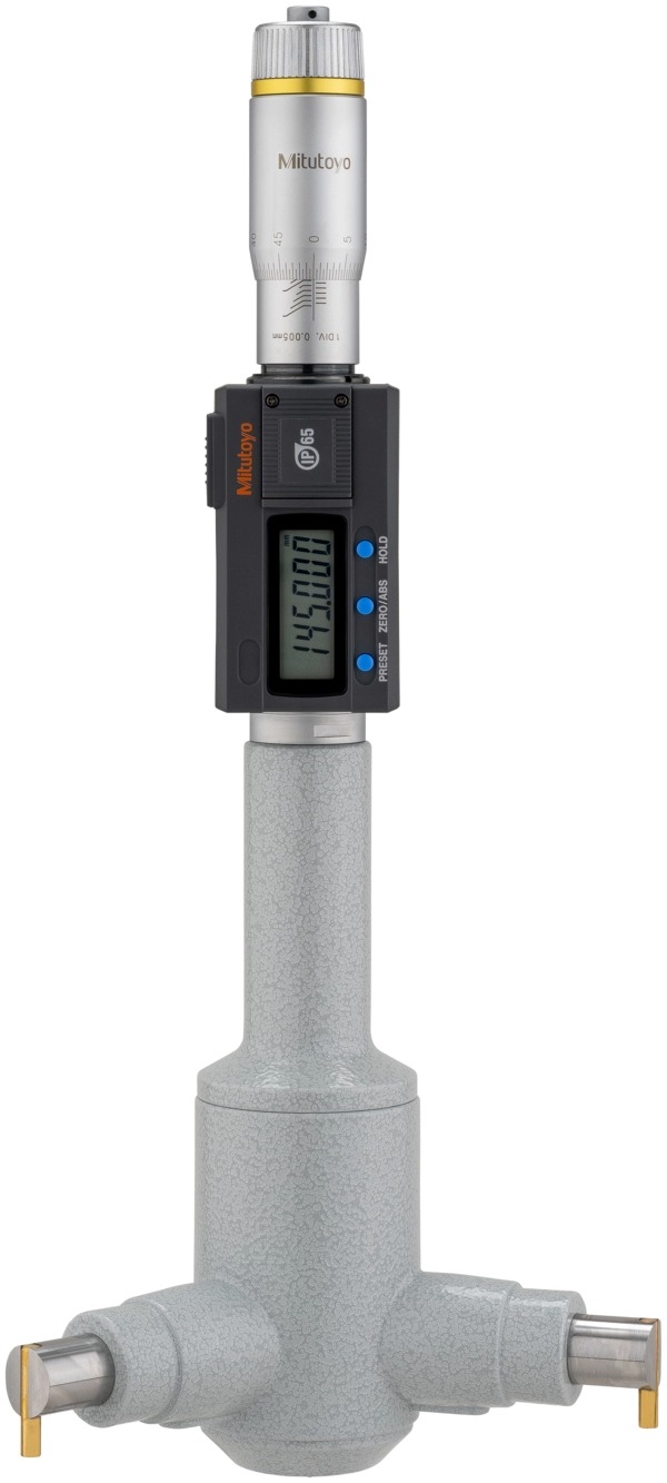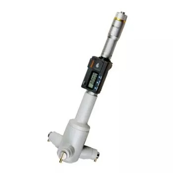 The Mitutoyo Digimatic Holtest internal micrometer utilizes three anvils and contact points for self-centering, precision measurements of the inside dimensions of bores. The 468-175 Mitutoyo Digimatic Holtest digital internal micrometer features self-centering anvils evenly spaced at 120° with contact points coated in Titanium Nitride (TiN) to provide accurate, sensitive measurements that are highly durable. Precision-machined gears ensure reliable, repeatable measurements that are shown on a large, easy-to-read LCD display in an impact and water resistant housing. The holtest’s ratchet stop mechanism provides a constant measuring force on the hardened-steel spindle to ensure accurate, even measurements.