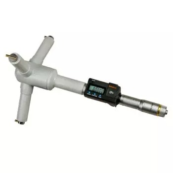 The Mitutoyo Digimatic Holtest internal micrometer utilizes three anvils and contact points for self-centering, precision measurements of the inside dimensions of bores. The 468-179 Mitutoyo Digimatic Holtest digital internal micrometer features self-centering anvils evenly spaced at 120° with contact points coated in Titanium Nitride (TiN) to provide accurate, sensitive measurements that are highly durable. Precision-machined gears ensure reliable, repeatable measurements that are shown on a large, easy-to-read LCD display in an impact and water resistant housing. The holtest’s ratchet stop mechanism provides a constant measuring force on the hardened-steel spindle to ensure accurate, even measurements.
