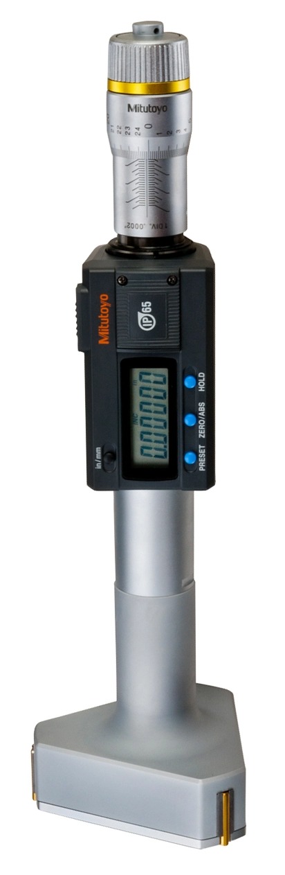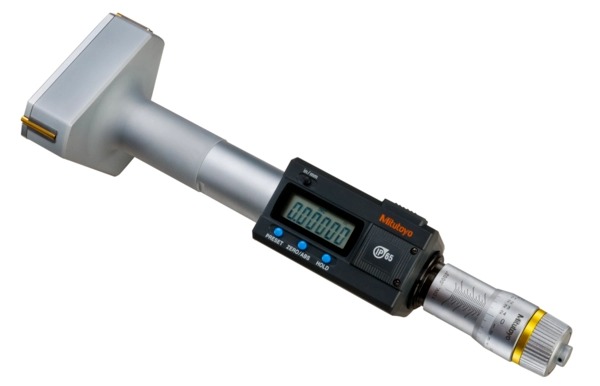 The Mitutoyo Digimatic Holtest internal micrometer utilizes three anvils and contact points for self-centering, precision measurements of the inside dimensions of bores. The 468-272 Mitutoyo Digimatic Holtest digital internal micrometer features self-centering anvils evenly spaced at 120° with contact points coated in Titanium Nitride (TiN) to provide accurate, sensitive measurements that are highly durable. Precision-machined gears ensure reliable, repeatable measurements that are shown on a large, easy-to-read LCD display in an impact and water resistant housing. The holtest’s ratchet stop mechanism provides a constant measuring force on the hardened-steel spindle to ensure accurate, even measurements.