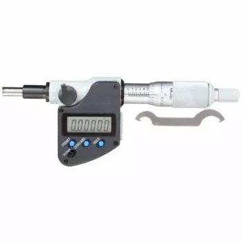 The Mitutoyo Digimatic digital micrometer is designed to deliver accurate, repeatable stage movements or stroke measurements. Measurements are displayed on an easy-to-read LCD readout. The Mitutoyo 350-381-30 Digimatic digital micrometer head is manufactured with the same precision and durability as our trusted micrometers in our own Japanese factory. The frame and spindles on Mitutoyo’s micrometer heads are constructed of special hardened steel that minimizes flex and fluctuations due to temperatures for better, repeatable accuracy. The ratchet thimble provides a constant measuring force on the spindle to ensure accurate, repeatable measurements.