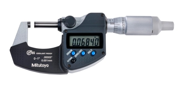 293-344-30 Mitutoyo IP65 Coolant Proof Micrometer with Ratchet Thimble: 0-1″/25.4mm