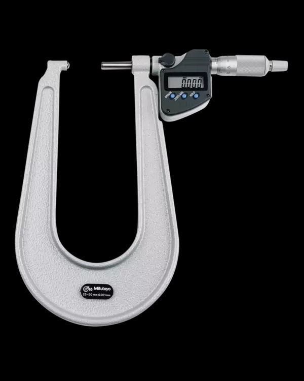This Digimatic Sheet Metal Micrometer is designed with a deep frame, for measuring the thickness of sheet material.