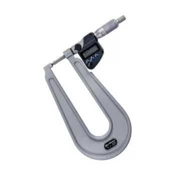 The Mitutoyo 389-271-30 Digimatic sheet metal micrometer is designed with a deep measuring throat to enable multiple measurements across a linear plane on materials such as sheet metal, paper, plastic and rubber. This micrometer has an IP65 dust and water protection level. The Mitutoyo digital sheet metal micrometer is available with a 6-inch or 12-inch throat, allowing the user to take measurements in the middle of sheets of metal, plastic, rubber and paper with high accuracy. Readings are displayed on an easy-to-read LCD readout with accessible function buttons. The coolant-proof micrometer’s ratchet thimble mechanism provides a constant measuring force on the spindle to ensure accurate, repeatable measurements.
