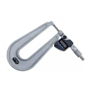 The Mitutoyo 389-351-30 Digimatic sheet metal micrometer is designed with a deep measuring throat to enable multiple measurements across a linear plane on materials such as sheet metal, paper, plastic and rubber. This micrometer has an IP65 dust and water protection level. The Mitutoyo digital sheet metal micrometer is available with a 6-inch or 12-inch throat, allowing the user to take measurements in the middle of sheets of metal, plastic, rubber and paper with high accuracy. Readings are displayed on an easy-to-read LCD readout with accessible function buttons. The coolant-proof micrometer’s ratchet thimble mechanism provides a constant measuring force on the spindle to ensure accurate, repeatable measurements.