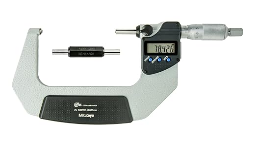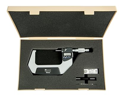 The Mitutoyo digimatic digital spherical micrometer is available with either a spherical face on the anvil and a flat spindle measuring surface or with spherical measuring surfaces on the anvil and spindle. A ratchet-stop mechanism provides uniform pressure on a workpiece for precise, repeatable measurements and eliminates over-speed error. The 395-274-30 IP65 Electronic Spherical Face Micrometer has a resolution of 0.00005″/.001mm and protected to IP65 standards.