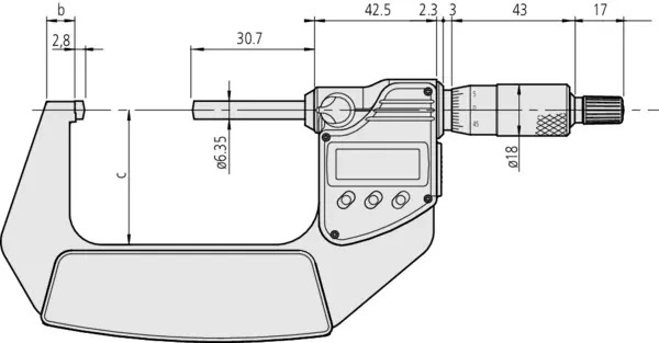 The Mitutoyo digimatic digital spherical micrometer is available with either a spherical face on the anvil and a flat spindle measuring surface or with spherical measuring surfaces on the anvil and spindle. A ratchet-stop mechanism provides uniform pressure on a workpiece for precise, repeatable measurements and eliminates over-speed error. The 395-351-30 IP65 Electronic Spherical Face Micrometer has a resolution of 0.00005″/.001mm and protected to IP65 standards.