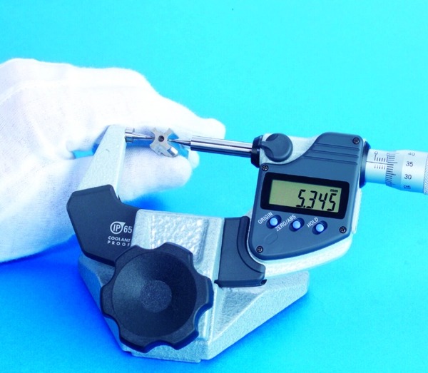 This Digimatic Point Micrometer features a pointed anvil and