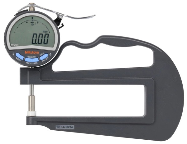 This ABSOLUTE Digimatic Thickness Gauge enables you to measure film, paper, etc., with flat contact points.