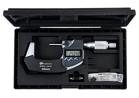 Designed to offer important readings at a glance, the Mitutoyo 395-252-30 Series 395 Spherical Face Digital Micrometer sports an LCD screen. The spherical micrometer features IP65 water/dust protection for lasting construction, and it offers data hold and Zero/ABS functions. Comes in a fitted plastic case.