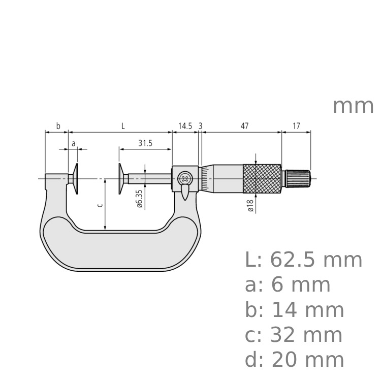 The Mitutoyo 123-102 Disk Micrometer has the following specifications: