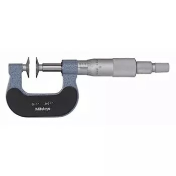 The Mitutoyo 169-203 mechanical non-rotating spindle disc micrometer is designed to measure the root tangent length of spur gears and helical gears with high accuracy. The Mitutoyo mechanical disc micrometer with non-rotating spindle uses flat discs constructed of hardened steel in our own Japanese facilities to measure lengths of spur and helical gears. The non-rotating spindle prevents workpiece deformation and wear by reducing torque on parts being measured. The flatness and thinness of the discs allow for reliable measurements in tight spaces. A ratchet-stop mechanism provides uniform pressure on a workpiece for precise, repeatable measurements and eliminates over-speed error.