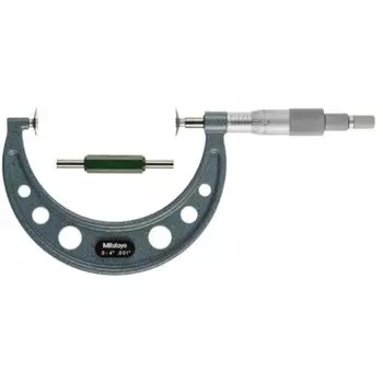 The Mitutoyo 169-208 mechanical non-rotating spindle disc micrometer is designed to measure the root tangent length of spur gears and helical gears with high accuracy. The Mitutoyo mechanical disc micrometer with non-rotating spindle uses flat discs constructed of hardened steel in our own Japanese facilities to measure lengths of spur and helical gears. The non-rotating spindle prevents workpiece deformation and wear by reducing torque on parts being measured. The flatness and thinness of the discs allow for reliable measurements in tight spaces. A ratchet-stop mechanism provides uniform pressure on a workpiece for precise, repeatable measurements and eliminates over-speed error.
