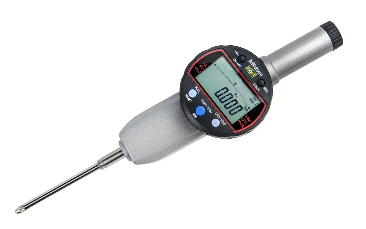 A conventional Digimatic indicator simply displays a spindle displacement, but the Calculation-Type Digimatic indicator incorporates an internal calculation function in place of spindle displacement. With fixtures, measurements such as feeler, inside diameter and radius of curvature measurement can easily be obtained without the hassle of conversion tables or equivalents.