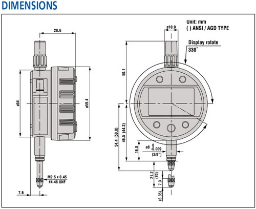 The Absolute Digimatic indicator performs internal calculations using the formula Ax+B+Cx-1 (assuming spindle displacement as x) while the specified coefficients A, B and, C can be set with respect to the purpose of measurement or dimensions of the fixtures. This unique feature allows you to read your measurements directly, without fumbling for conversions.