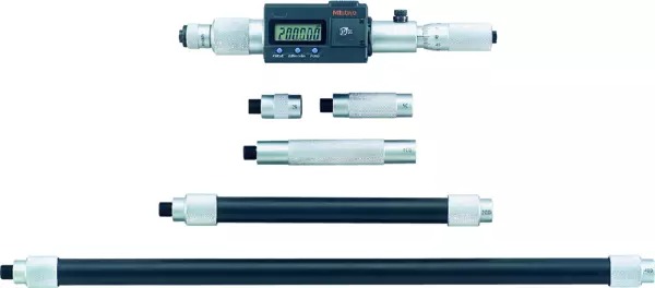 Wide range of ID measurements by combining extension rods (pipes) and anvils with the micrometer head.