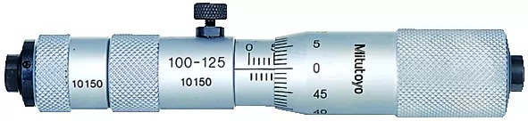 A Mitutoyo inside micrometer head designed for standalone use or in conjunction with optional interchangeable extension tubes. Satin-chrome finished.