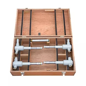 The Mitutoyo Holtest mechanical three-point internal micrometer utilizes three self-centering anvils with precision contact points for accurate and efficient measurements of inside dimensions of bores. The Mitutoyo mechanical Holtest internal micrometer features three hardened-steel anvils evenly spaced at 120° for true alignment of the axis bore for accurate, easily repeatable measurements. Contact points are coated with Titanium Nitride (TiN)* for added durability and precision. The holtest’s ratchet stop mechanism provides a constant measuring force on the hardened-steel spindle to ensure accurate, even measurements.