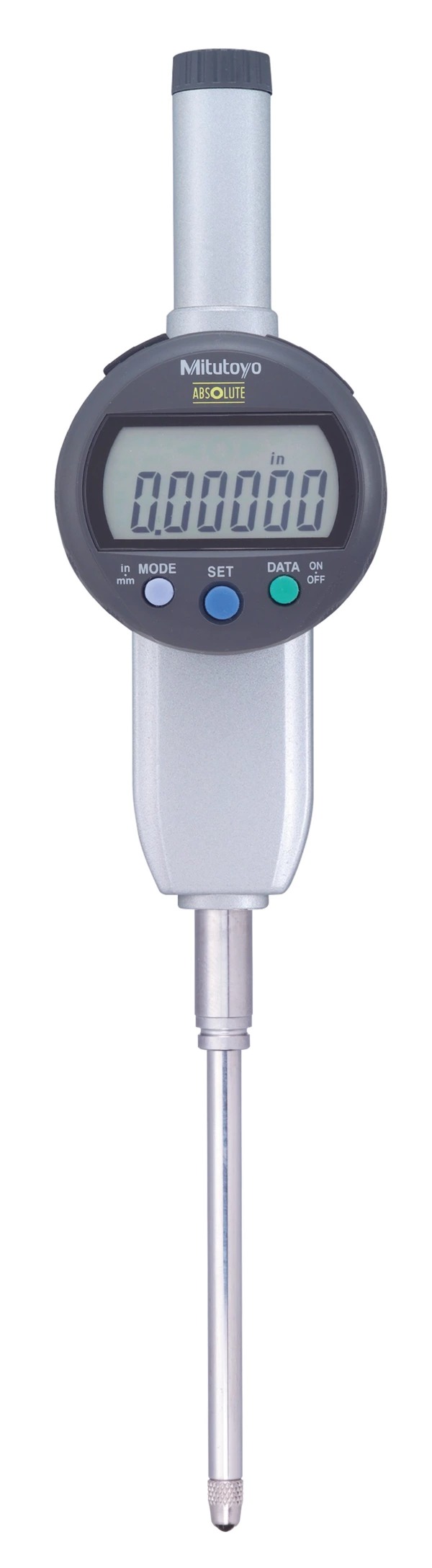 A Mitutoyo digital indicator of similar size to a Series 2 type dial indicator. ABSOLUTE System scale for error free, high-speed measurement. Functionality includes displaying the result of an internal calculation based on spindle displacement, according to a single-term user-defined formula (Ax), and tolerance judgement. SPC data output.