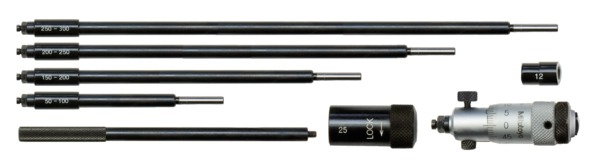 Delivered: Including box, extension rods (5 pcs), extension collar, micrometer head 141-025