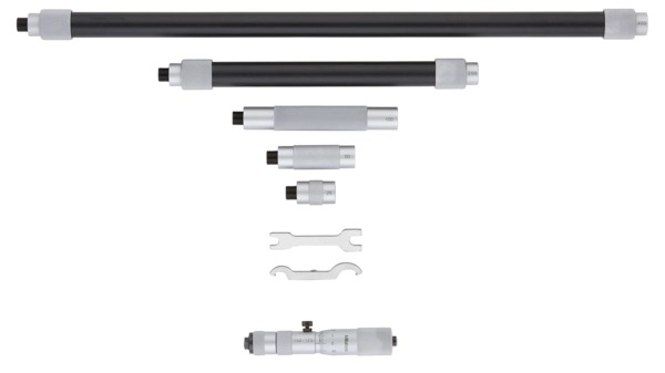 Wide range of ID measurements by combining extension pipes and anvils with the micrometer head.