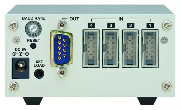 The MUX-10F 4 channel D-SUB9 serial interface is a microcontrolled interface that connects four measurement devices, with Digimatic output, to the RS-232C serial port of a computer.