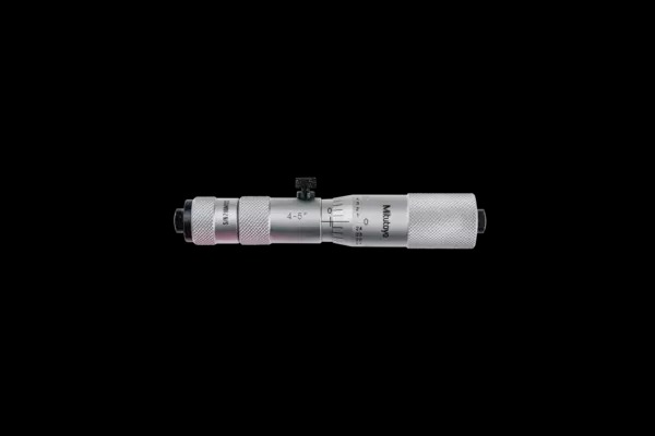 A Mitutoyo inside micrometer head designed for standalone use or in conjunction with interchangeable extension tubes. Satin-chrome finished.