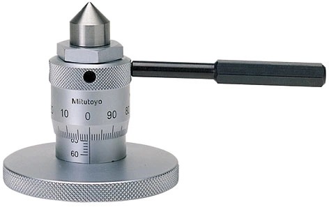 A Mitutoyo height-adjustable support for accurate levelling of small machines, surface plates, and similar equipment. Easily adjusted under heavy load.
